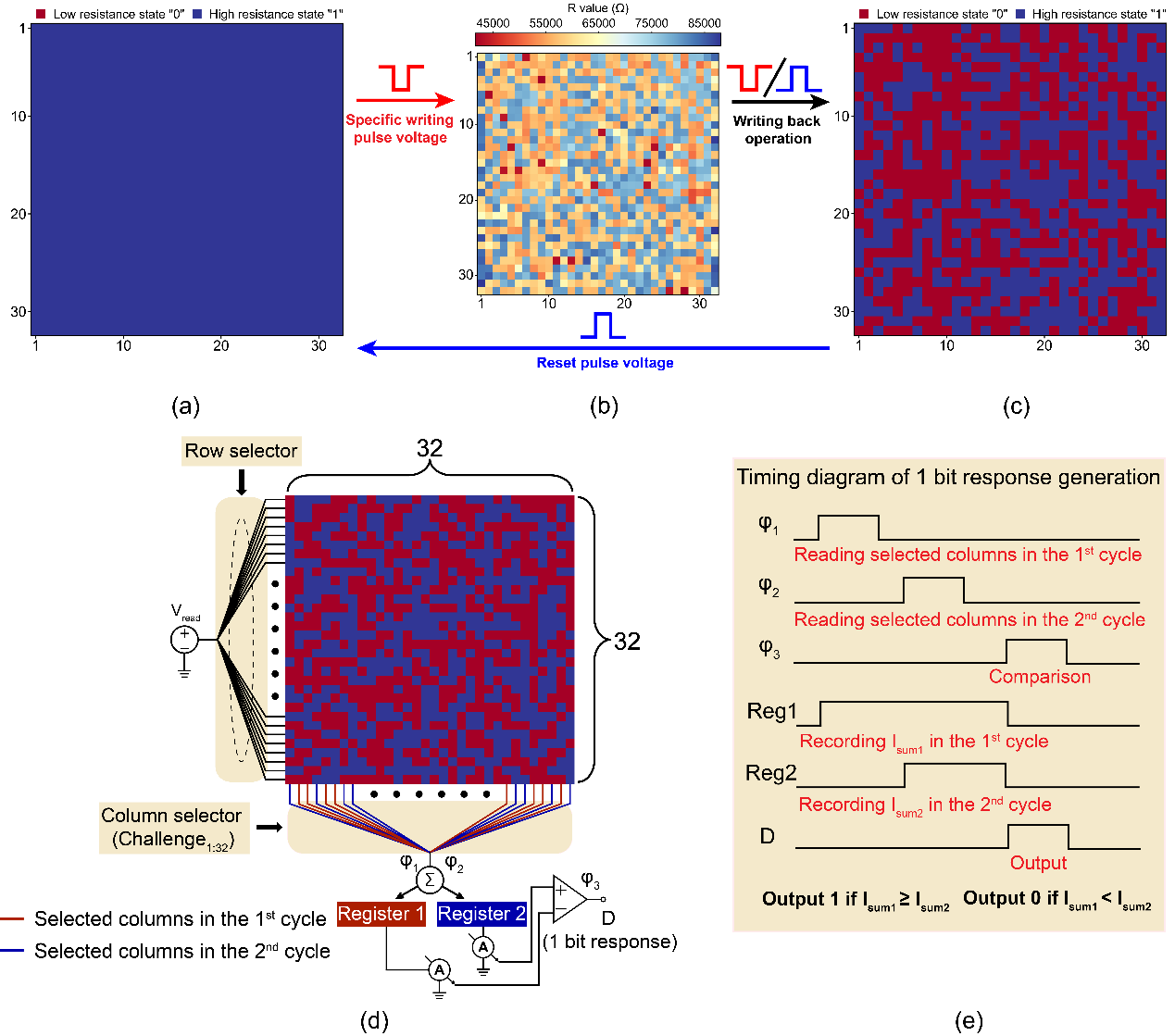 物联网的迅猛发展为缘边缘端设备的硬件安全带来了诸多挑战。根据统计,2022年物联网设备遭受的恶意攻击超过了1亿次,导致了严重的信息泄露和巨大的经济损失。作为一种加密原语,PUF有望在缓解这些问题方面发挥重要作用。在制造工艺中,通常存在着不可避免的固有随机性,PUF利用这种难以复制的微小变化,将输入的挑战映射为独立且不可预测的响应,并结合特定算法输出密钥。当前,全电学PUF的基本单元通常基于CMOS技术。然而,CMOS PUF内禀熵源不足且易受环境影响,因此通常需要额外的纠错电路,在物联网应用中的可行性受到限制。相比之下,磁随机存储器(MRAM)具有较低的功耗和面积开销、丰富的内禀熵源及高可靠性等特点,这使得MRAM PUF成为物联网应用中极具前景的选择。