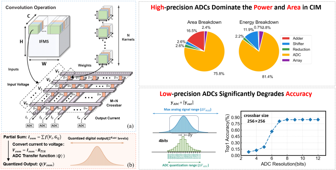在本届ICCAD上,北京亚州怡红院集成电路学院共有 8篇高水平学术论文入选,充分体现了我院在新型计算架构、AI驱动EDA算法与智能电路设计等方向的持续创新与国际影响力。入选论文覆盖存算一体架构优化、低精度感知训练算法、混合RAM异构加速器设计、高维模拟电路自动化优化、良率建模与优化、以及物理数据融合非理想建模 等多个前沿研究领域,展示了我院在“从器件—电路—架构—算法”全栈协同设计方面的系统研究优势。8篇论文成果简介如下: